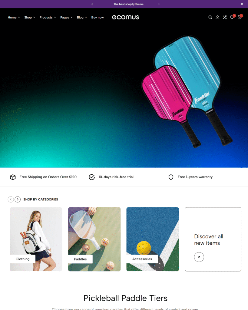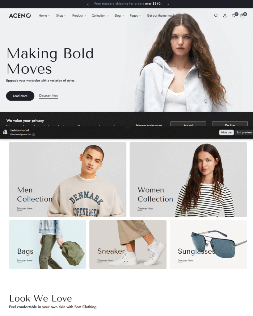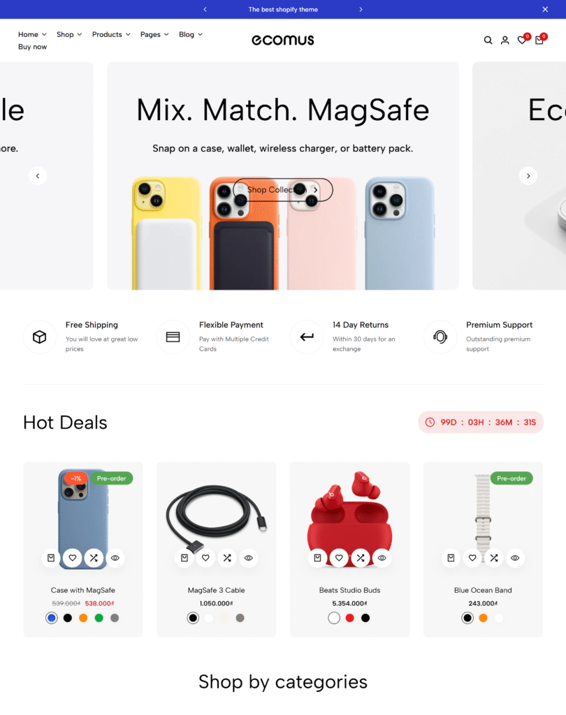This Shopify template offers a clean and modern design that makes any store look professional. The navigation is smooth, pages load quickly, and the layout feels well-structured for showcasing products effectively.