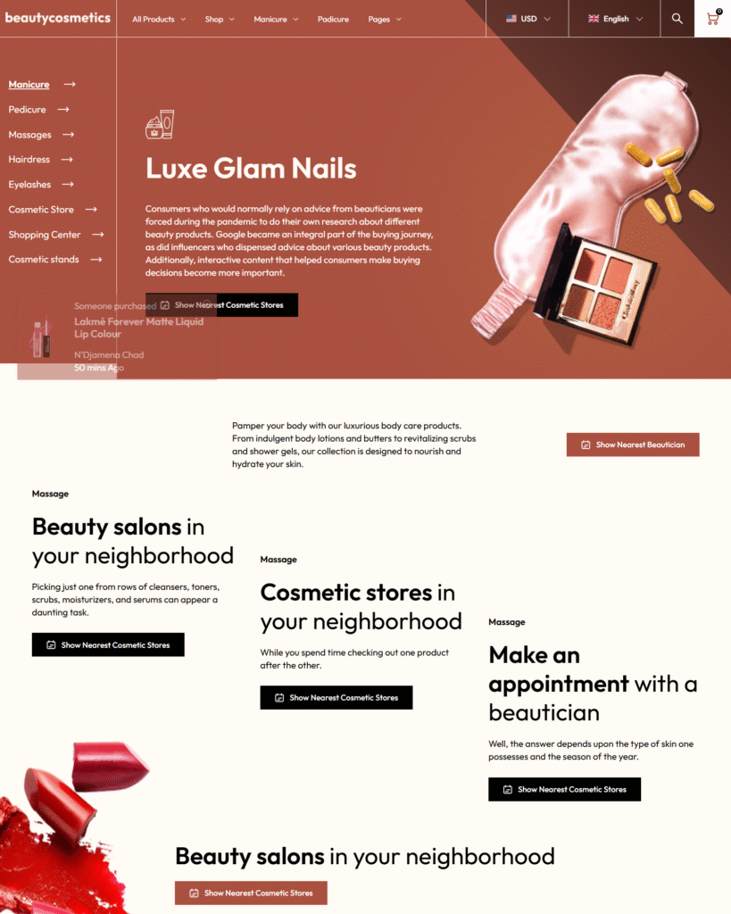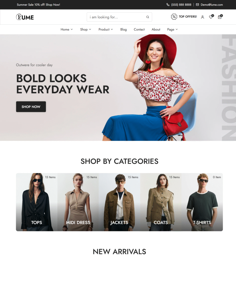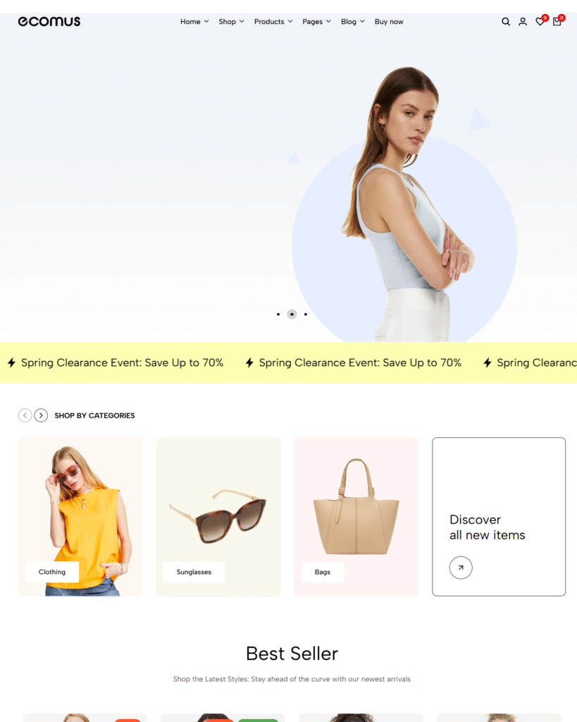 The template’s product pages are well-organized and visually appealing. High-quality layouts help highlight items clearly, making it perfect for fashion, accessories, or general e-commerce stores.